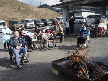 日頃、書かれている書き初めやお飾りを燃やしました。