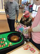 ボッチャ(ボールを投げて点数を競う)、ルーレット、麻雀で対戦しました。