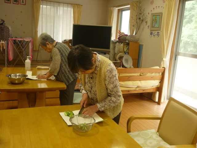 季節を感じていただくため 職員の自宅で採れた野菜を持ち寄り